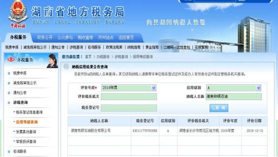 為推進(jìn)社會(huì)誠(chéng)信體系建設(shè),湖南省國(guó)稅局、地稅局按照國(guó)家稅務(wù)總局《納稅信用管理辦法(試行)》(總局公告2014第40號(hào)),開展了2016年度納稅信用聯(lián)合評(píng)價(jià)工作,我司再次獲得納稅信用“金字代言——A級(jí)納稅人”的稱號(hào),我司已連續(xù)三年獲此榮譽(yù),展現(xiàn)了誠(chéng)信納稅的良好企業(yè)形象。